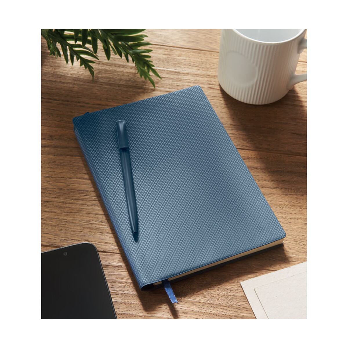 Notatnik A5 PU z długopisem NOTA to doskonały gadżet dla Twojej firmy, który skutecznie połączy użyteczność z elegancją. Wykonany z wysokiej jakości papieru z recyklingu, Notatnik A5 PU z długopisem NOTA posiada 160 stron w linie, co daje aż 80 arkuszy na notatki, szkice czy zapiski. Całość jest elegancko oprawiona w ciemnogranatową, strukturalną okładkę z PU.