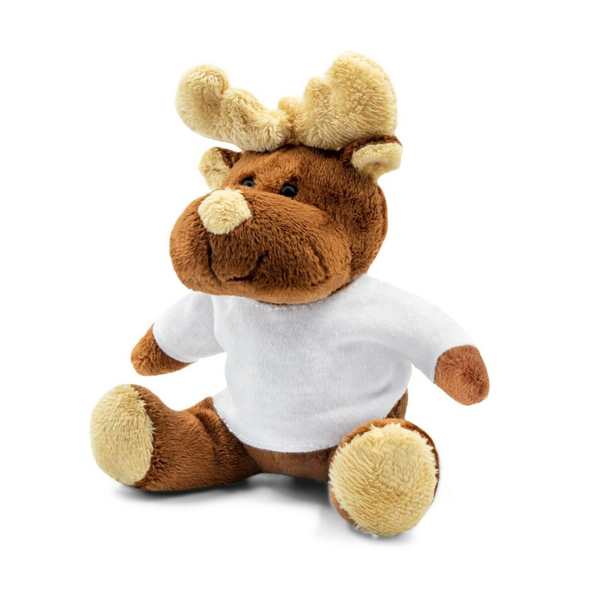 Pluszowy renifer | Comet White ma unikalny element – białą koszulkę, która jest idealna pod logo i nadruk. Koszulka, oznakowana według życzenia klienta, pakowana jest oddzielnie, co ułatwia personalizację. Jest to perfekcyjny sposób na dodanie szczypty osobistego charakteru do tego miłego upominku.