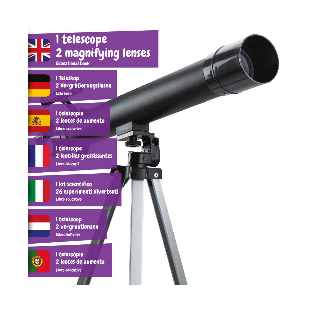 TELESCOPE stanowi doskonały gadżet reklamowy dla Twojej firmy, zwłaszcza jeśli działa ona w branży turystycznej, sportowej lub edukacyjnej. Ze swoimi imponującymi wymiarami 95 x 758 x 240 mm i wagą 619 g, ten kolorowy zestaw do gry zaopatrzy każde spotkanie na świeżym powietrzu w element rywalizacji i zabawy.