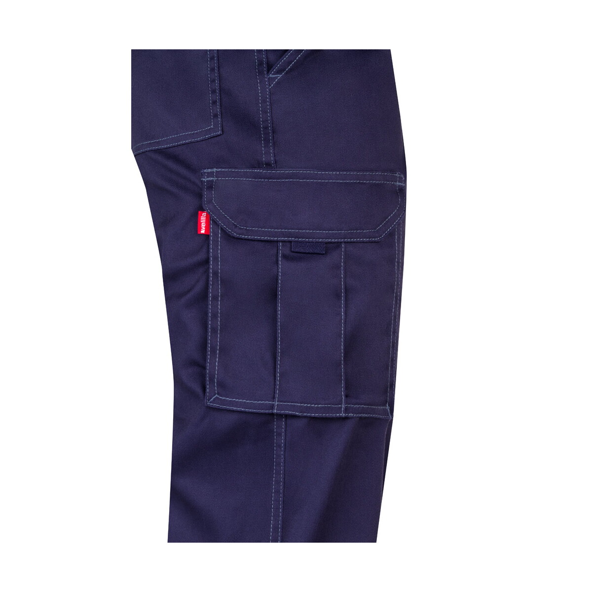 VL LUGH. Dwukolorowe spodnie diagonalne z wieloma kieszeniami (240 g/m²), z bawełny (35%) i poliestru (65%) – Granatowe